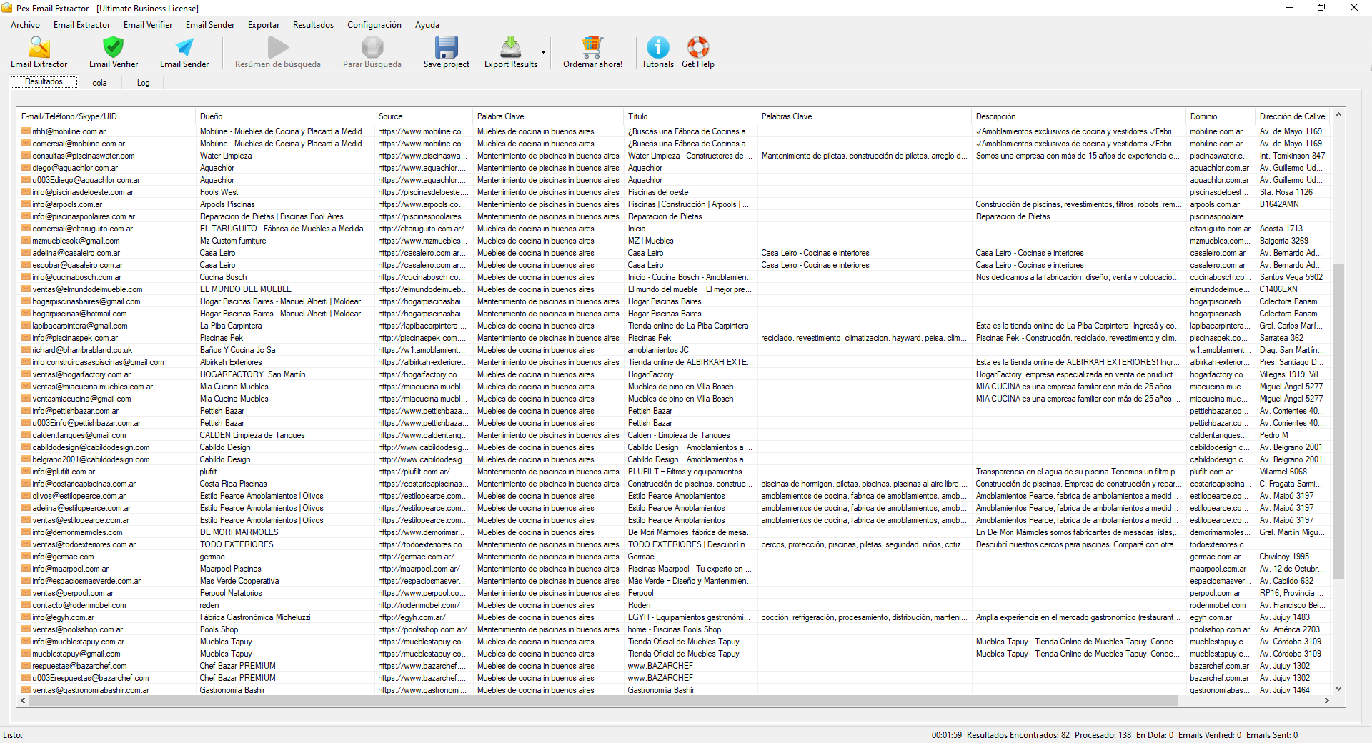 ¿Necesitas crear Bases de correos electrónicos personalizadas para tu negocio? Con Pex Email Extractor, puedes extraer correos directamente desde Google, Google Maps, Bing y Yandex. Además, puedes utilizar keywords relevantes para tu sector y generar bases de datos optimizadas para tu zona.